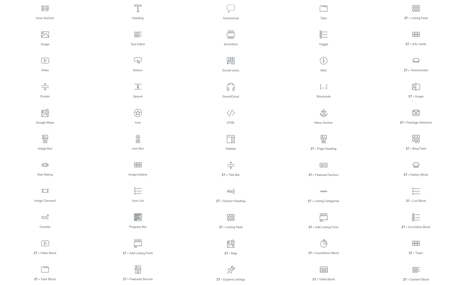 All elementor widgets